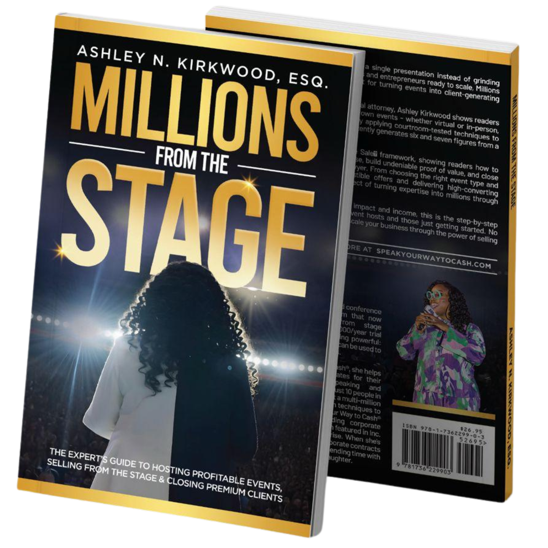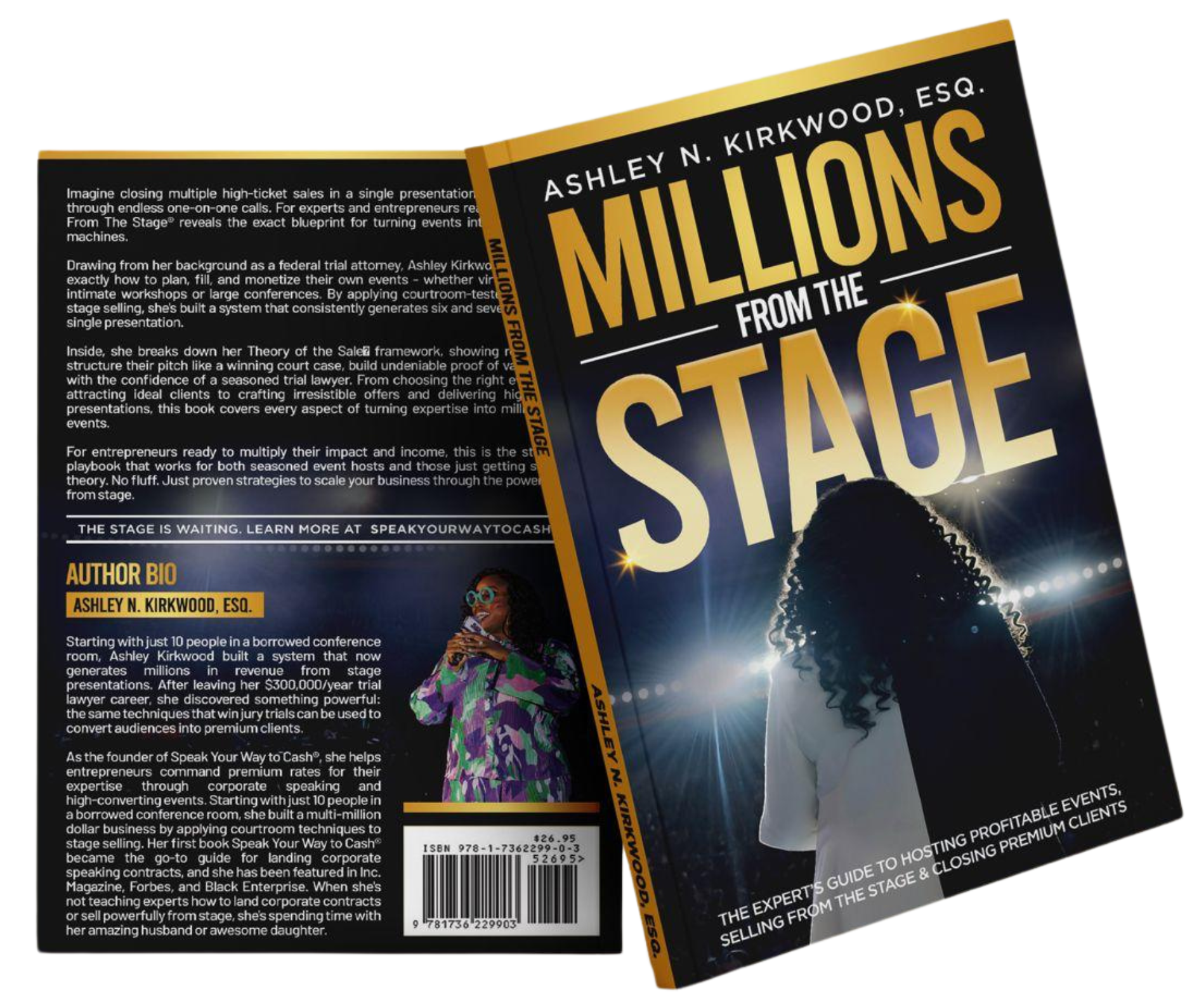As the founder of Speak Your Way to Cash®, she helps entrepreneurs command premium rates for their expertise through corporate speaking and high-converting events. Starting with just 10 people in a borrowed conference room, she built a multi-million dollar business by applying courtroom techniques to stage selling. Her first book Speak Your Way to Cash® became the go-to guide for landing corporate speaking contracts, and she has been featured in Inc. Magazine, Forbes, and Black Enterprise. When she's not teaching experts how to land corporate contracts or sell powerfully from stage, she's spending time with her amazing husband or awesome daughter.